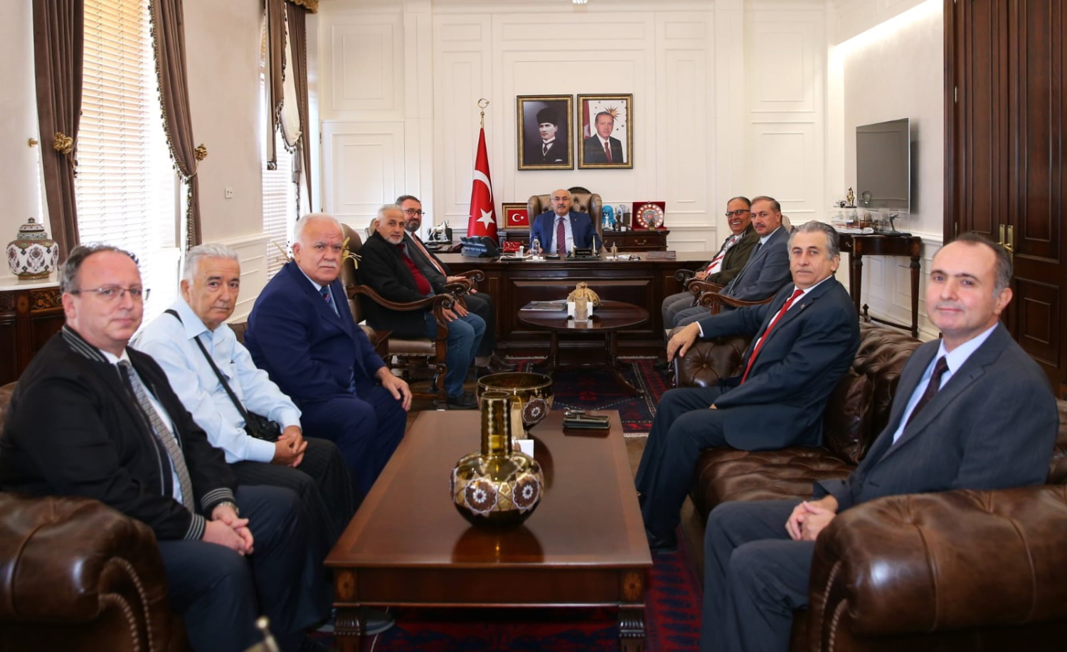 Sayın Manisa Vali Yrd. Aydın Memük Av.Mehmet Enes bey isadamı Ali bey ile beraber Sayın hocamızın bizi kabulu için teşekkür ederiz